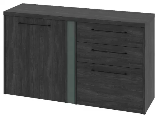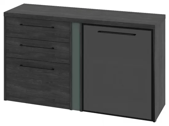Тумба двухсекционная с дверью ЛДСП правой и 3 ящиками- Дуб Шерман антрацит/Зеленый камень