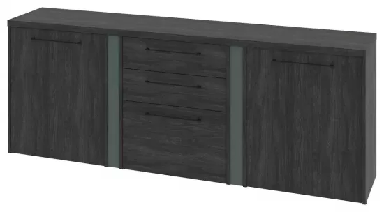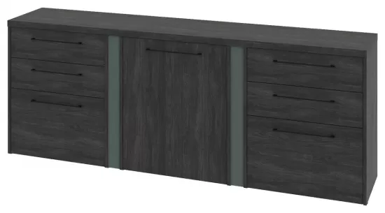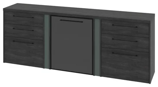 Тумба трехсекционная с 2 стеклянными дверьми в профиле и 3 ящиками- Дуб Шерман антрацит/Зеленый камень